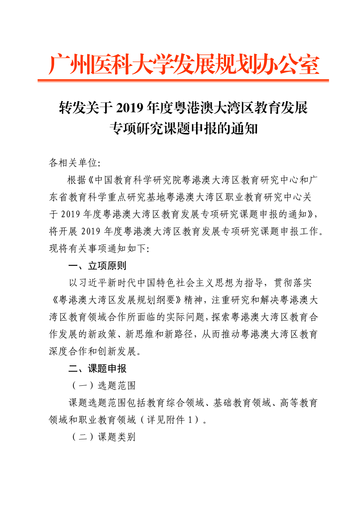 转发关于2019年度粤港澳大湾区教育发展专项研究课题申报的通知