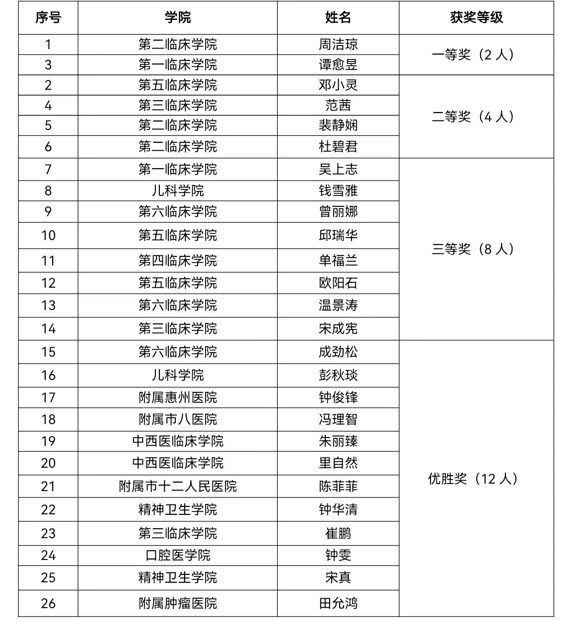 广州医科大学2023年临床教学病例讨论竞赛获奖名单