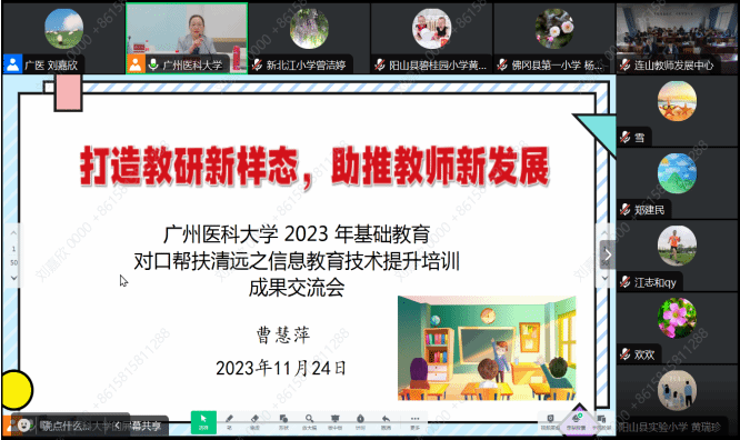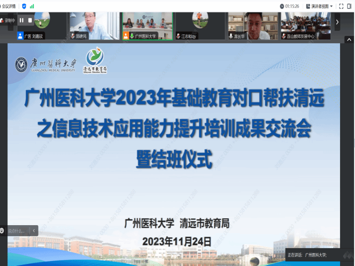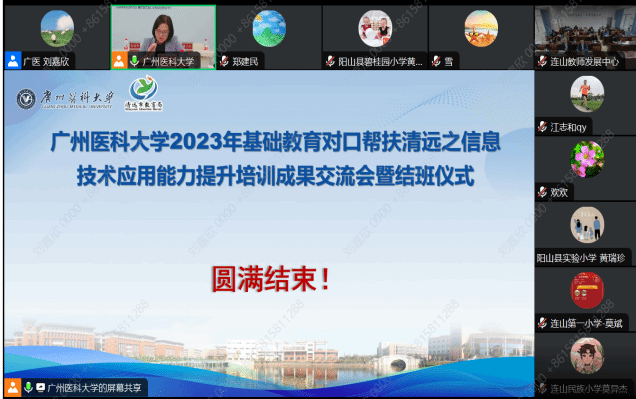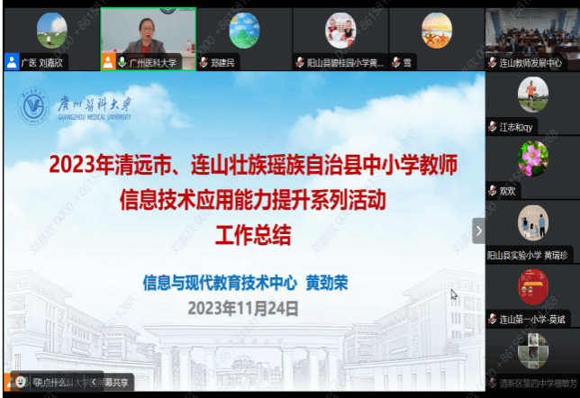 为进一步提升清远市和连山壮族瑶族自治县中小学教师信息素养和教师教学能力,推动教师将信息技术手段融入教学设计和跨学科教学,促成信息化共享共建,展示清远市基础教育信息化培训建设成果,推动清远市基础教育高质量发展。近日,由广州医科大学联合清远市教育局与连山壮族瑶族自治县教育局举办的2023年清远市、连山县中小学教师信息技术应用能力提升系列活动圆满落幕。