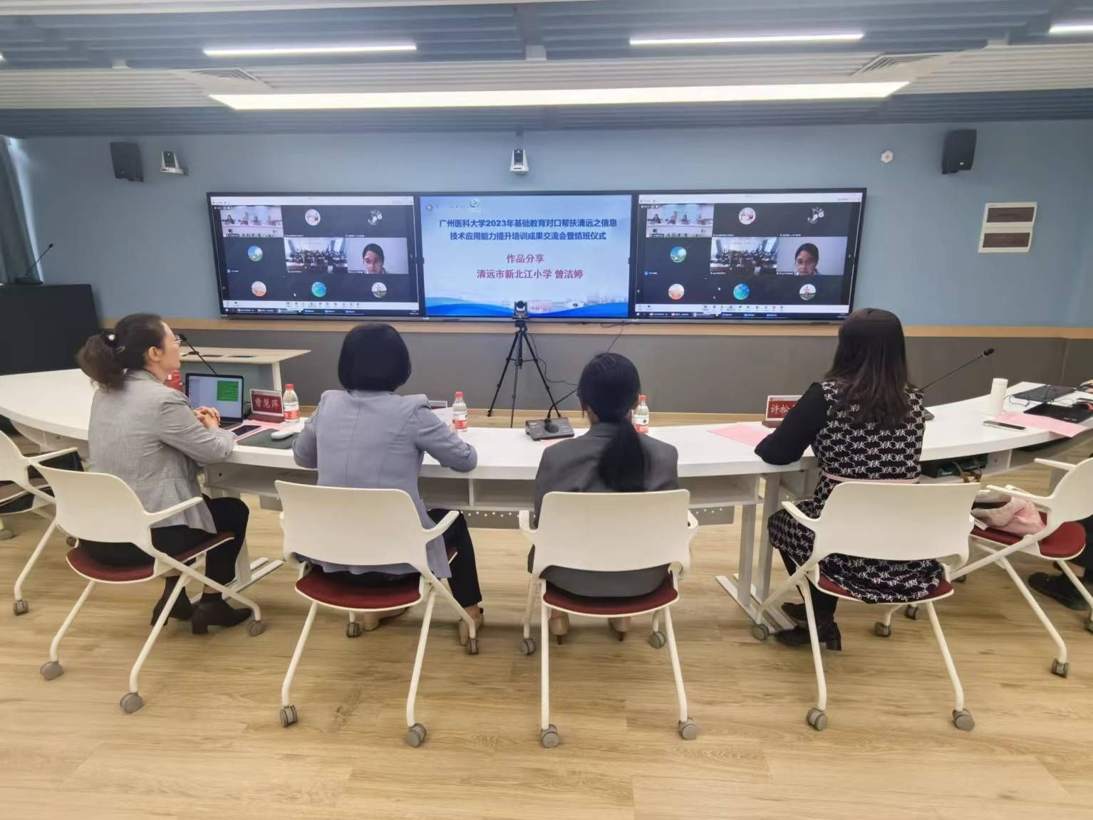 最后,教师教学发展与研究中心吴他凡主任作总结发言。她表示,通过搭建学习交流平台,清远市和连山县中小学教师在平台上学习信息化教学理论与技能、开展教研与教学实践,相互借鉴,共同进步,这对于推动教育现代化,提高教学质量,促进教育公平具有重要的意义。尽管基础教育对口帮扶之教师信息技术能力提升活动已告一段落,但探索和实践才刚刚开始,我们将继续秉持“广医所能、清远所需”的原则与清远携手共进,为基础教育的美好未来努力奋斗!