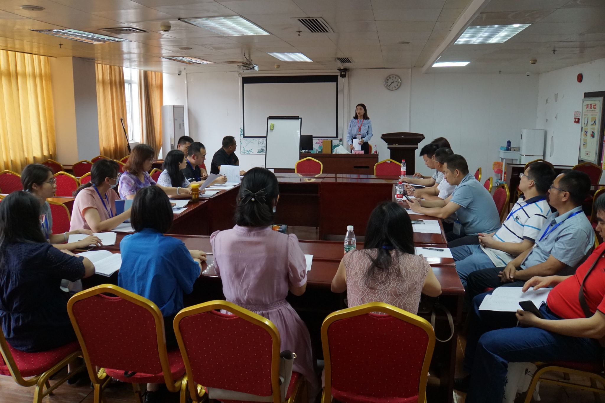 6月14日上午,培训班在附属第六医院举行了简约而热烈的开幕式,清远市教育局副局长刘耀坚, 学校教务处处长郑建民、 附属第六医院院长胡庆兰、附属脑科医院专职党委副书记杨婵娟、精神卫生学院副院长周亮、教师教学发展与研究中心办公室主任许松青、附属第六医院院长助理潘朝杰等出席了开班仪式。仪式由附属第六医院副院长向镜芬主持。