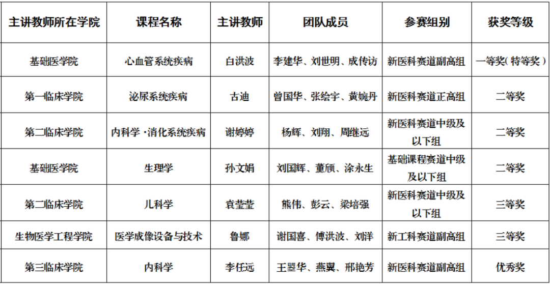 4月21日下午,第三届全国高校教师教学创新大赛广东分赛暨广东省高校教师教学创新大赛(以下简称“省赛”)闭幕式及颁奖典礼在中山大学举行。我校共获一等奖(特等奖)1项、二等奖3项、三等奖2项、优秀奖1项,并收获优秀组织奖。我校在获奖等级和数量上均实现了新突破。其中,基础医学院白洪波副教授《心血管系统疾病》课程团队荣获新医科赛道副高组一等奖(特等奖),将代表广东省参加全国赛。