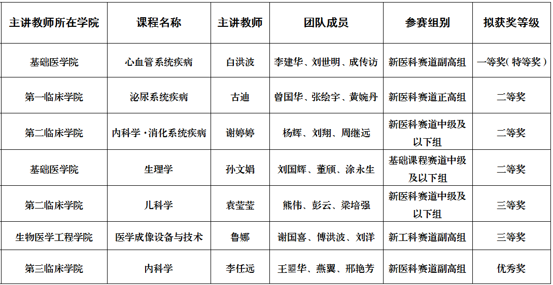 4月11日,第三届全国高校教师教学创新大赛广东分赛暨广东省高校教师教学创新大赛组委会办公室发布大赛获奖名单公示,我校白洪波副教授《心血管系统疾病》课程团队拟获新医科赛道副高组一等奖(特等奖),拟将代表广东省参加国赛。