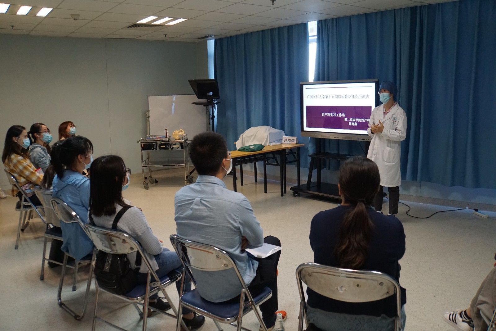 下午,培训学员分别参加了临床教学专家精心准备的内科、外科、妇产科、儿科的工作坊。在工作坊中,培训专家首先讲解了见习教学的带教流程与注意事项,再以实操示范了见习教学的过程,学员通过现场演练和观摩的形式,现场气氛活跃,学员与专家之间相互交流热烈。