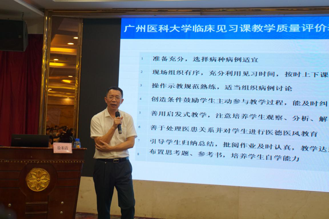 学校赵醒村副校长做动员讲话。他指出,在钟南山院士团队的带领下,广医系统全体教职员工凝心聚力,开拓创新,学校进入了发展的快车道,取得了不俗的成绩。“十三五”期间,学校始终坚持以习近平新时代中国特色社会主义思想为指导,以“立足广州,服务广东,面向全国,放眼世界”为服务方向,以“培养具有人文情况、国际视野、创新精神和实践能力的高素质人才”为培养目标,以“医文相融”为特色,以“三实两创”为核心,本科人才培养质量得以全面提高。学校近年来致力推进高水平大学建设,无论从国家层面还是学校自身发展的需要都对临床教学水平提出更高地要求,同样也对临床教师教学能力有了更高的要求。通过参加本次师资培训班,将进一步规范理论教学和临床带教,大力提升临床教学质量与教学水平,促进医、教、研全面发展,为推进我校内涵发展起到积极作用,希望参训老师能珍惜培训机会,在为期两天的培训中学有所获。