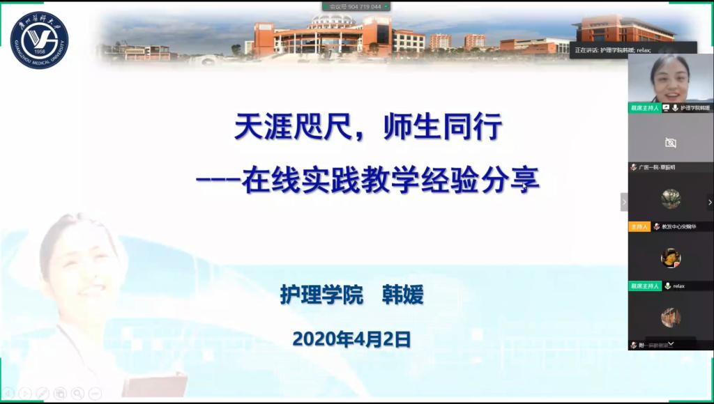 4月2日下午,教师教学发展中心通过腾讯会议直播的方式成功举办了第三期线上教学沙龙,本次活动邀请护理学院韩媛副教授进行线上实践教学的经验分享。来自各学院、教学单位100余位一线教师和教学管理人员参与了本次沙龙活动,一起探讨疫情期间如何组织在线实践教学,本次线上教学沙龙由教师教学发展中心办公室许松青主任主持。