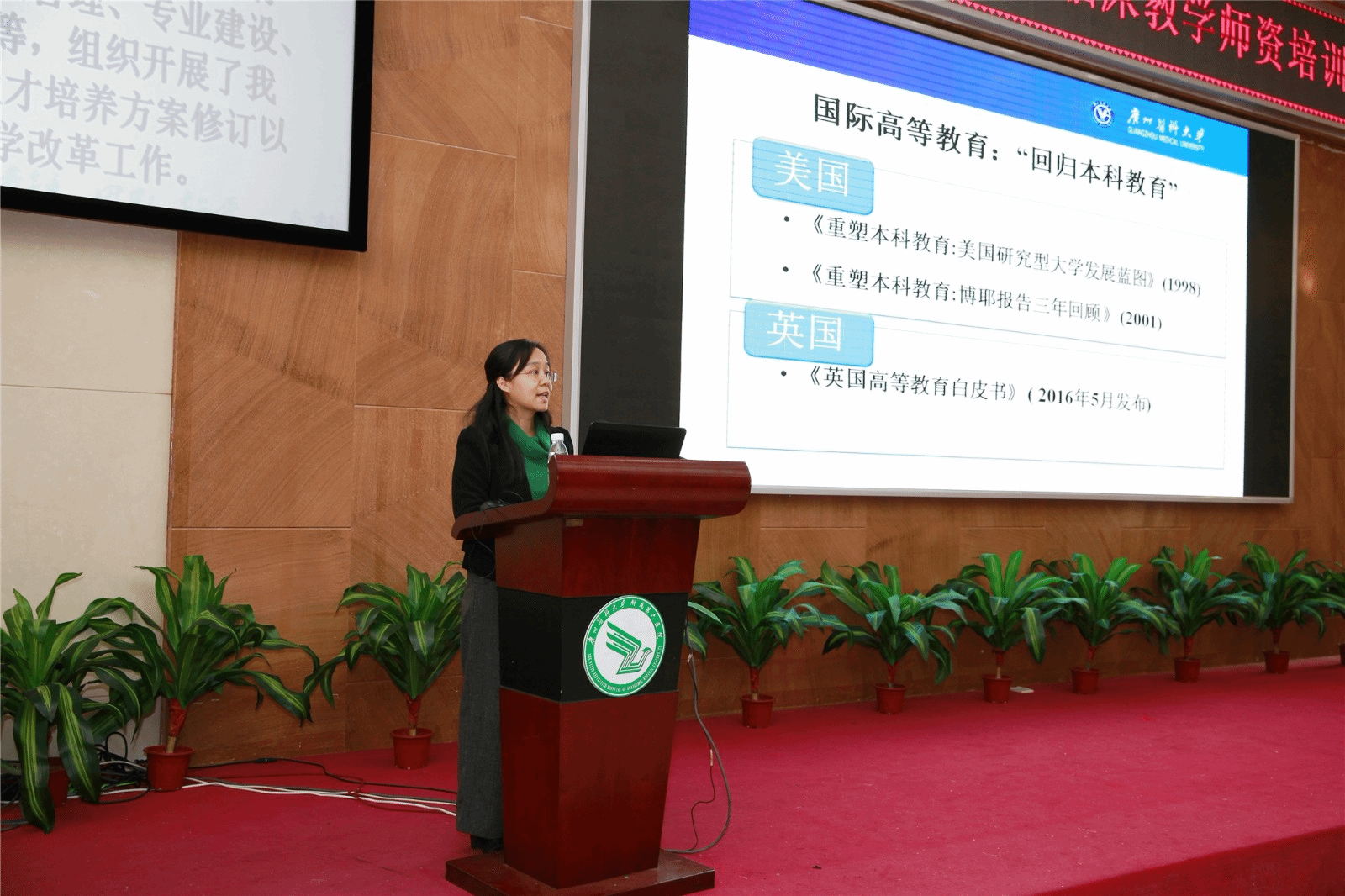 学校教师教学发展中心办公室许松青主任做动员讲话,她表示现在正值年末,临床工作非常忙,老师们抽出时间来参加教学培训,机会来之不易,希望大家在培训过程中集中精力,认真学习,注意联系实际,积极参与工作坊实操,切实提高临床床旁教学能力。