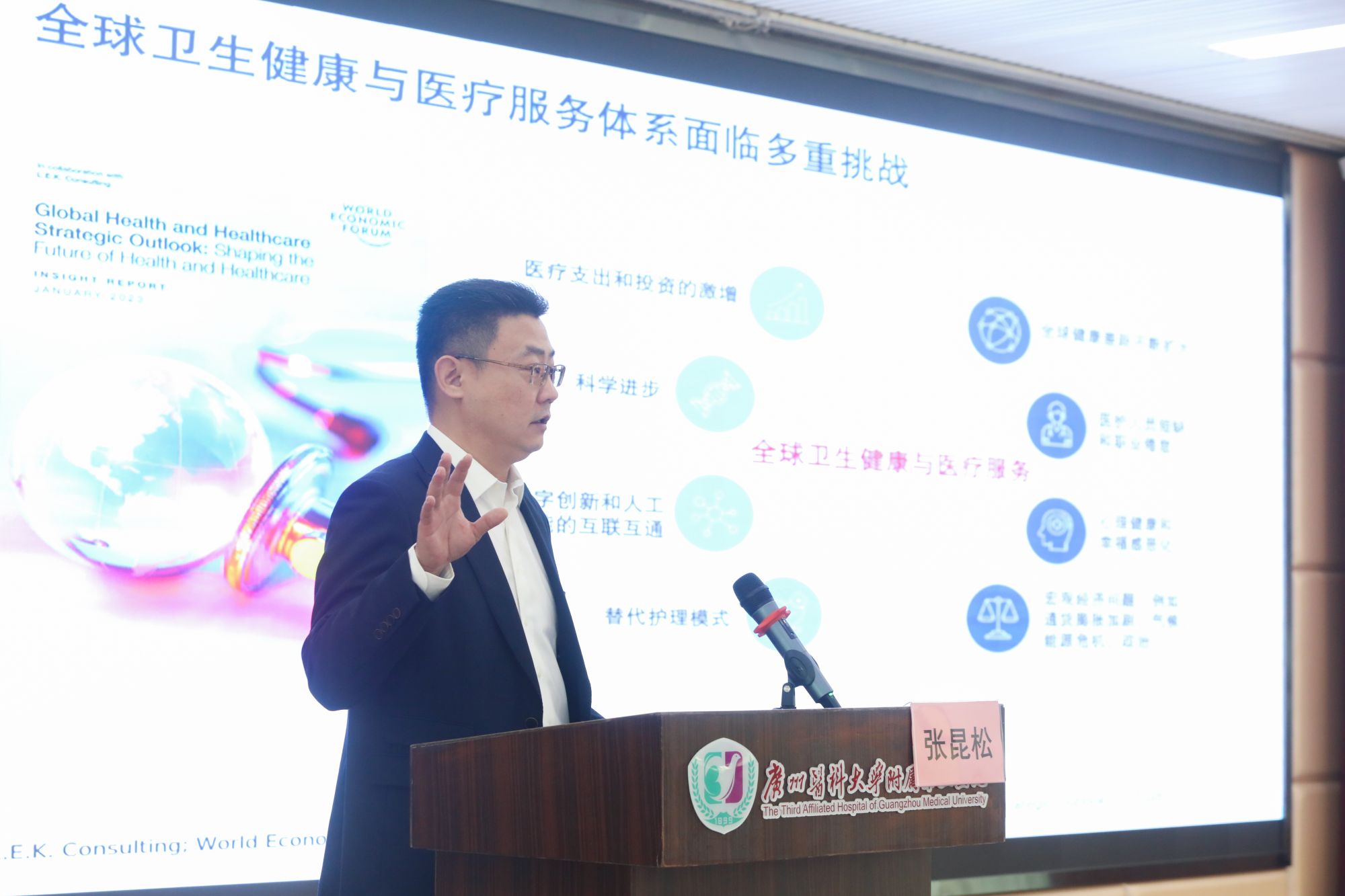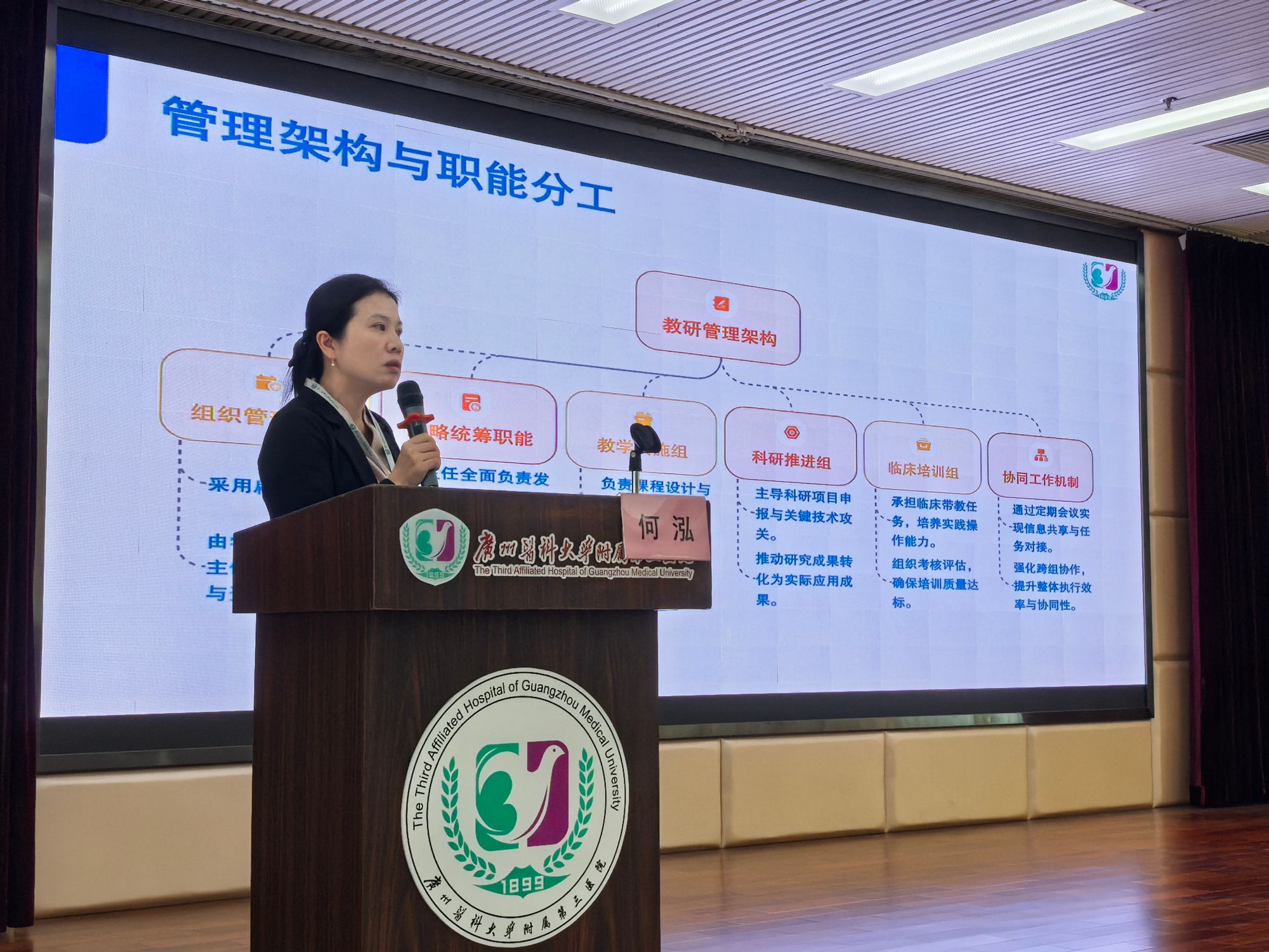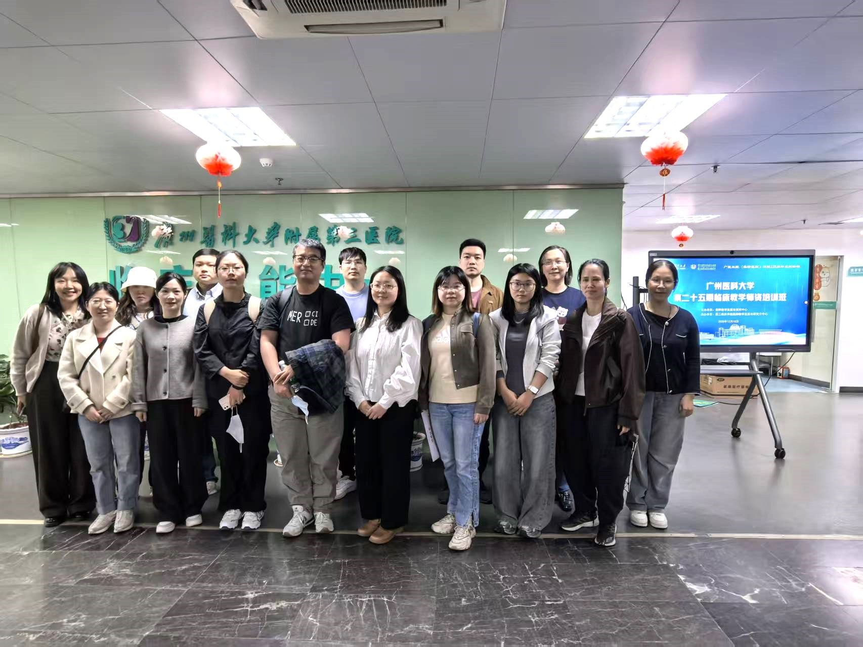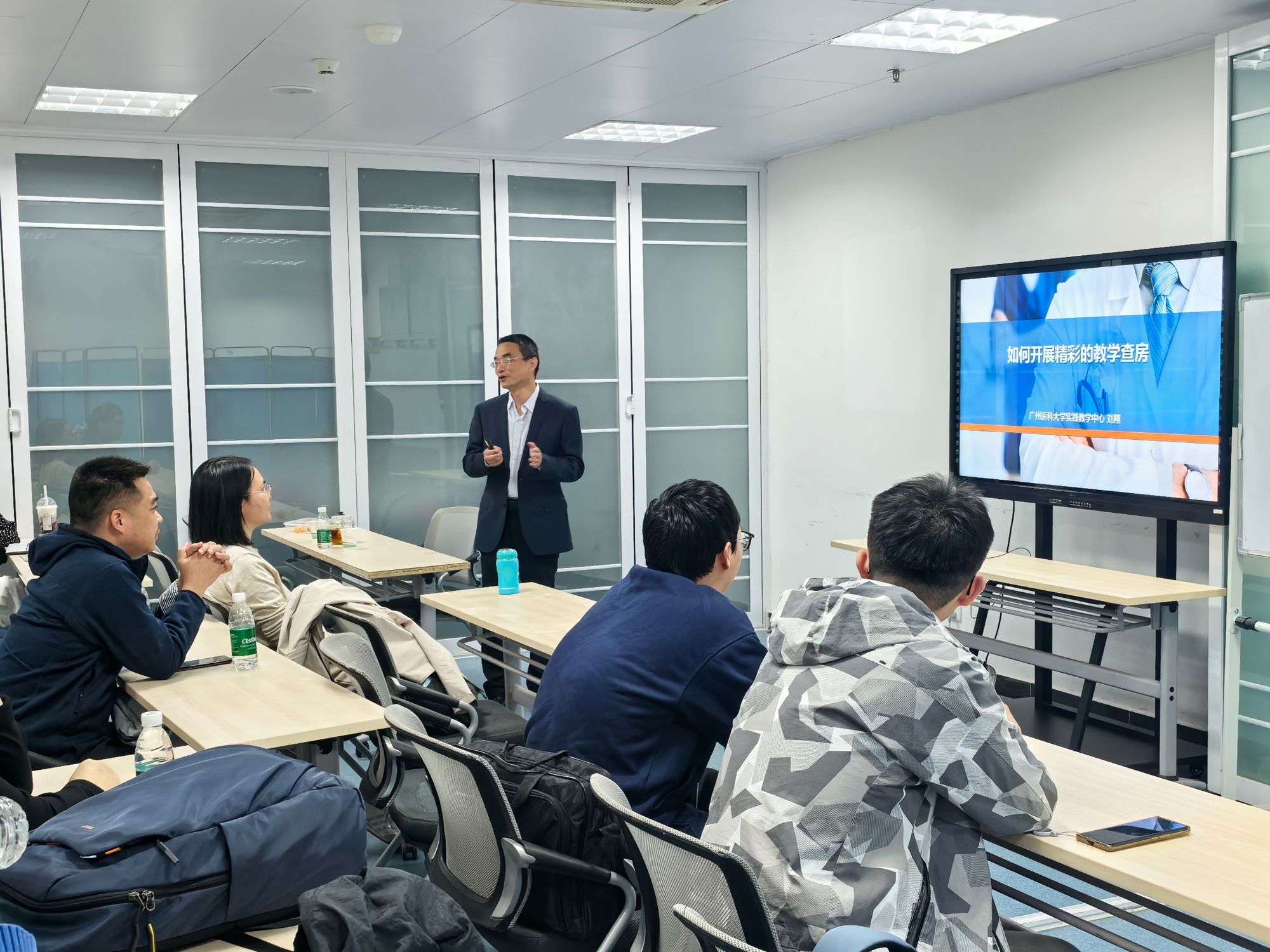 随后进入精彩纷呈的专题讲座环节。中山大学附属第一医院张昆松教授以《AI时代的未来医生》为题,深入探讨人工智能对医学教育生态的重塑、展现丰富的AI医疗实践场景;学校第三临床学院何泓副教授则立足一线教学管理需求,开展《妇产科学教研室建设经验分享》,为夯实教学组织基础提供了务实可行的指导;上海交通大学余建波教授通过云端连线,进行《面向“四个未来”:高校智慧课程建设与实践案例分享》,围绕AI推动医学教育改革、智慧课程建设,阐述了系统前沿的教学理念,展现了操作性强的实践范本。
