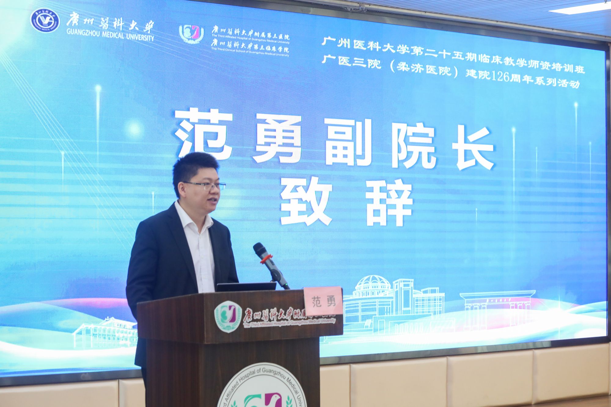 当日上午9时,第三临床学院教学管理科何泓科长主持了简短而隆重的开班仪式。中山大学附属第一医院教育处医学教师发展中心张昆松主任、学校教务处张辉副处长、教师教学发展与研究中心林爱华副主任、第三临床学院范勇副院长等多位领导与专家出席了活动。范勇副院长代表承办单位致辞,并对全体与会同仁表示热烈欢迎,他强调本次培训班是学校深化医教协同、推动教学创新的重要举措,具有很强的针对性和前瞻性,期待参训教师踊跃交流、深入研讨,将更多先进的理念与方法应用到教学实际中,提升院校临床教学整体水平。